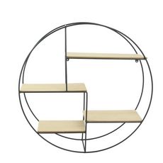 Informations Techniques : Dimensions : L. 50 x l. 10 x H. 50 cm Matières : Bois, MDF & Métal Spécificités : Pratique & Utile Étagère Murale design Forme Ronde Contient 4 Niveaux Visserie non incluse Facile d'entretien & d'utilisation Couleur : Naturel & Noir