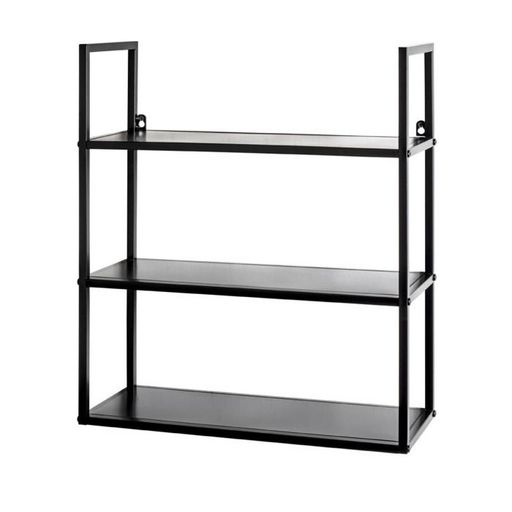 Informations Techniques : Dimensions : L. 50 x l. 20 x H. 58 cm Hauteur Intermédiaire : 15-20 cm Matières : Métal Spécificités : Pratique & Tendance Étagère Murale Forme Rectangulaire 3 Niveaux Effet Laqué Livré non monté Nombre de colis : 1 Poids : 2,88 kg Couleur : Noir