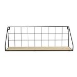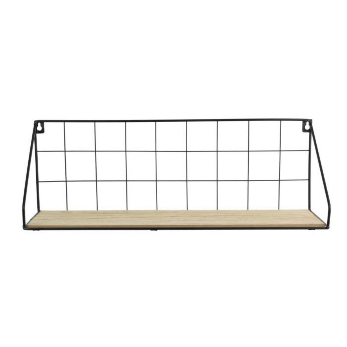 Informations Techniques : Dimensions : L. 45 x l. 15 x H. 15,5 cm Matière : Bois, MDF & Métal Spécificités : Pratique & Utile Étagère Murale design Visserie non incluses Facile d'entretien & d'utilisation Couleur : Naturel & Noir