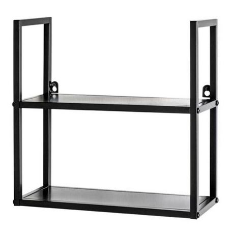 Informations Techniques : Dimensions : L. 36 x l. 15 x H. 36 cm Matière : Métal Spécificités : Utile & Pratique Étagère murale 2 niveaux Poids : 1,35 kg Couleur : Noir