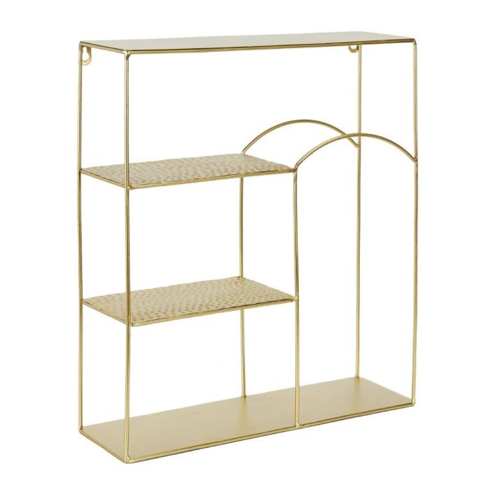Informations Techniques : Dimensions : L. 40 x l. 12 x H. 45 cm Matière : Métal Spécificités : Pratique & Design Étagère murale Métal martelé Forme rectangulaire Poids : 1,4 kg Couleur : Or
