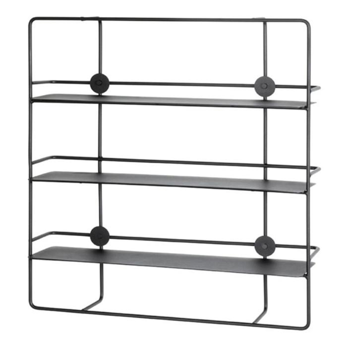 Informations Techniques : Dimensions : L. 53 x l. 14 x H. 56 cm Matière : Métal Spécificités : Moderne & Tendance Étagère murale design Avec 3 niveaux En métal laqué Facile d'entretien & d'utilisation Nombre de colis : 1 Poids : 5 kg Couleur : Noir