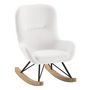 Informations Techniques : Dimensions : L. 55,5 x l. 66 x H. 68,5 cm Matières : Tissu, Bois (Hêtre), Métal & Mousse Spécificités : Tendance & Cosy Mini fauteuil à bascule Tissu bouclé À monter soi-même Nombre de colis : 1 Poids max supporté : 75 kg Poids : 8,45 kg Couleur : Blanc