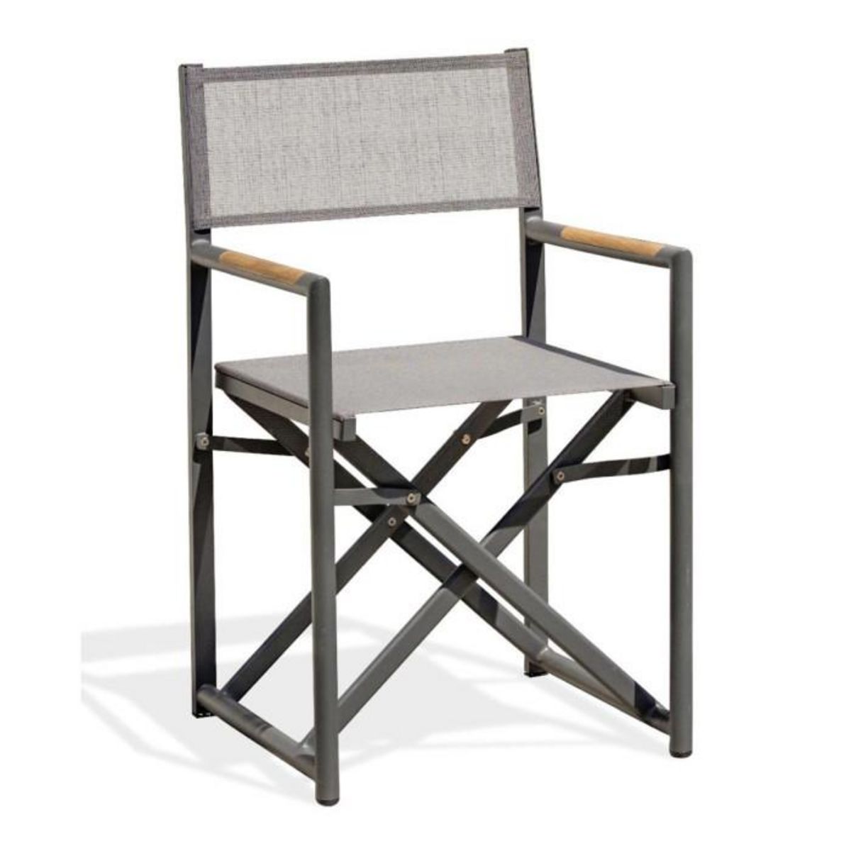 Informations Techniques : Dimensions : L. 53 x l. 53 x H. 88 cm Assise : L. 45 x l. 47,5 x H. 47,5 cm Accoudoir : H. 65,5 cm Matières : Aluminium, Textilène & Bois (Teck) Spécificités : Original & Pratique Fauteuil de jardin pliable Style metteur en scène Accoudoirs avec teck À monter soi-même Nombr