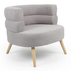 Informations Techniques : Dimensions : L. 80 x l. 75 x H. 74 cm Matières : Revêtement : Tissu Piètement : Bois Spécificités : Pratique & Chic Fauteuil design Style scandinave & hygge Tissu bouclette Assise confortable Nombre de colis : 1 Poids : 16 kg Couleur : Gris