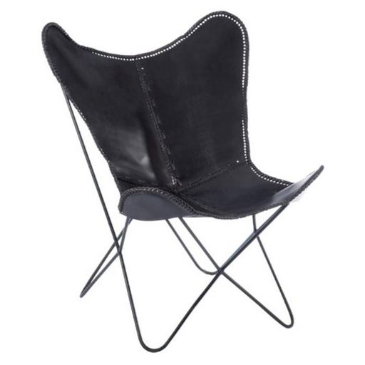 Fauteuil Design en Cuir Papillon 92cm Noir