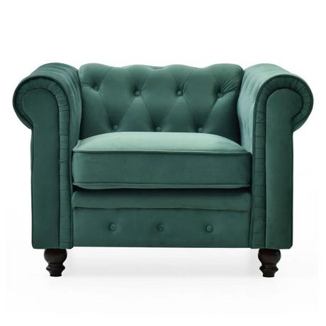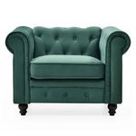 Fauteuil Design Velours Chesterfield 111cm Vert