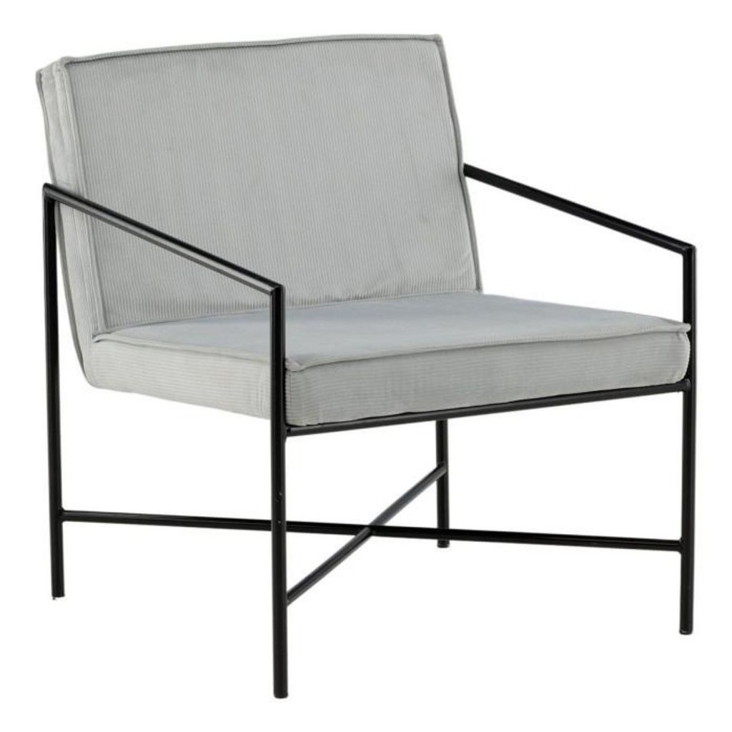 Fauteuil Design Velours Côtelé Rakel 78cm Gris