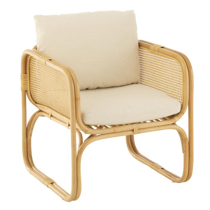 Fauteuil en Rotin & Coussin Joey 67cm Naturel