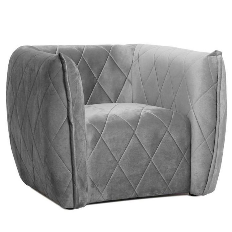Informations Techniques : Dimensions : L. 90 x l. 90 x H. 70 cm Matière : Velours Spécificités : Élégant & Confortable Fauteuil matelassé Motif losange Nombre de colis : 1 Poids : 24,6 kg Couleur : Gris