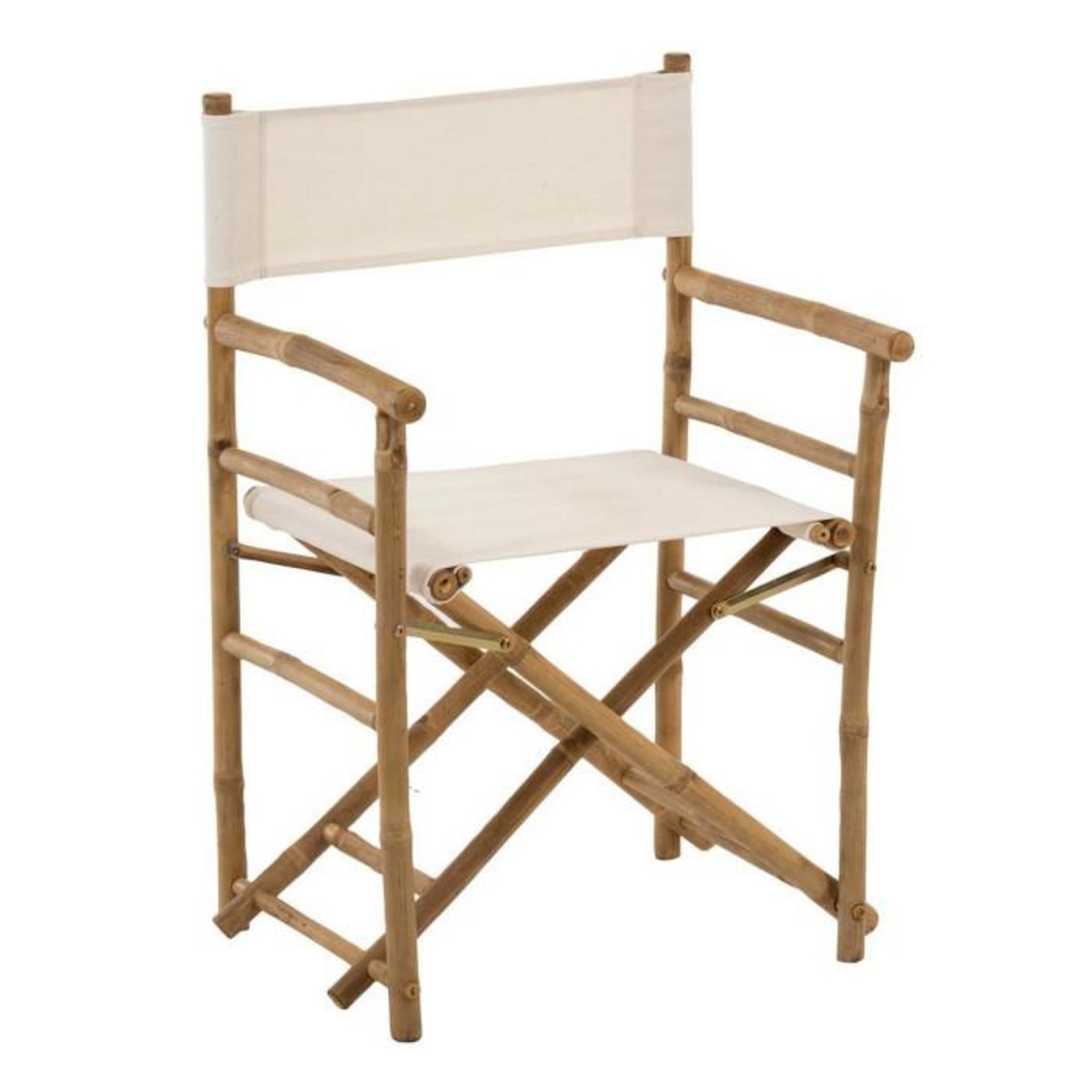 Informations Techniques : Dimensions : L. 58 x l. 44 x H. 88 cm Matières : Bambou & Textile Spécificités : Tendance & Original Fauteuil design Fonction Pliable Type Régisseur Poids : 7 kg Couleur : Naturel & Blanc