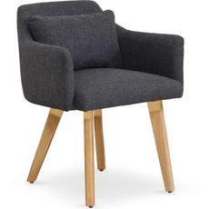 Informations Techniques : Dimensions : L. 58 x P. 58 x H. 70 cm Assise: H. 43 cm Accoudoirs : H. 58 cm Matières : Tissu, Bois & Métal Spécificités : Design scandinave et contemporain Assise Confortable Couleur : Gris Foncé & Bois Assise : Gris Foncé Pieds : Bois