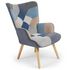 Fauteuil Scandinave en Velours Patchwork Gris & Bleu