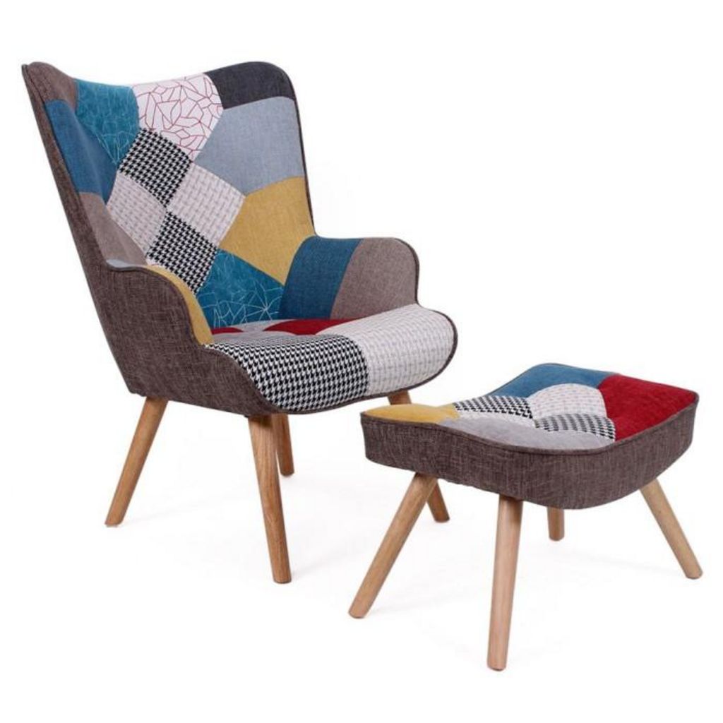 Fauteuil Scandinave & Pouf Patchwork Orle 98cm Multicolore
