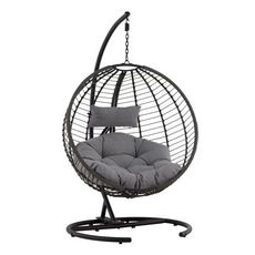 Informations Techniques : Dimensions : L. 134 x l. 124 x H. 205 cm Assise : L. 76 x l. 68 cm Matières : Acier & Polyester Spécificités : Robuste & Confortable Fauteuil suspendu design Recouvert de corde de polyester Coussins moelleux inclus Poids max supporté : 120 kg Poids : 25 kg Couleur : Noir &