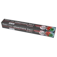 Informations Techniques : Dimensions : L. 50 m Diamètre : 0,29 cm Matière : PVC Spécificités : Pratique & Utile Film Alimentaire 2 en 1 Facile à Découper Compatible au Micro-Ondes, au Réfrigérateur & au Congélateur Couleur : Transparent