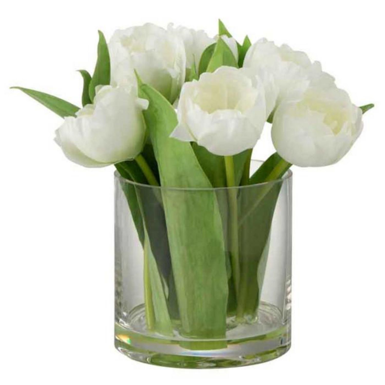 Fleur Artificielle & Vase Tulipes 22cm Blanc