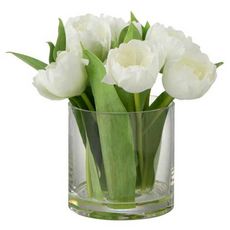 Informations Techniques : Dimensions : L. 20 x l. 18,5 x H. 22,5 cm Matières : Verre & Plastique Spécificités : Tendance & Moderne Fleur Artificielle & Vase Design Tulipes Poids : 0,735 kg Couleur : Blanc & Vert