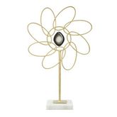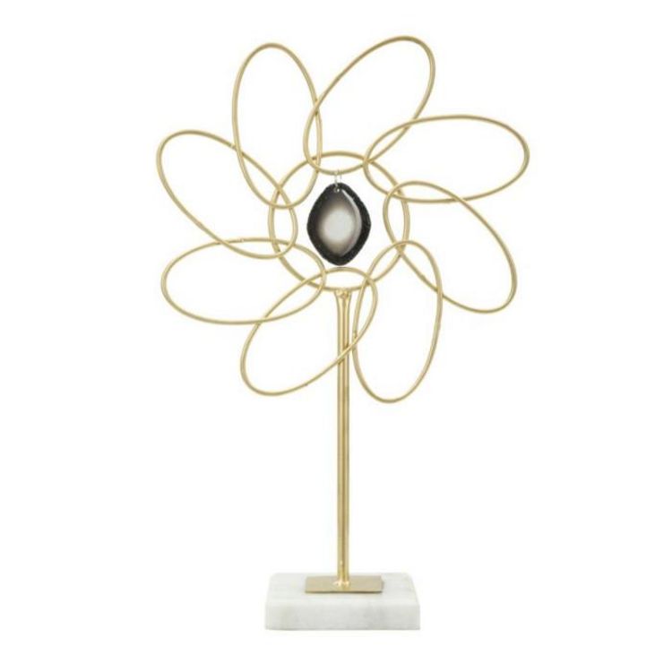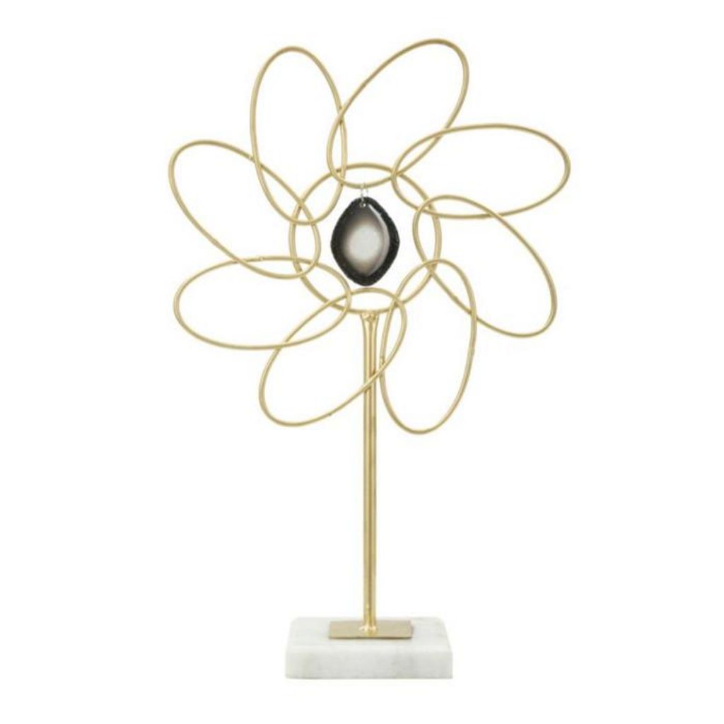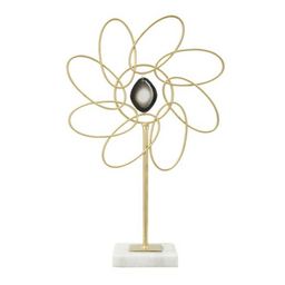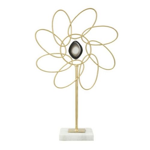 Informations Techniques : Dimensions : L. 24 x l. 10 x H. 37,5 cm Matière : Métal Spécificités : Glamour & Élégante Fleur déco sur socle à poser Avec pendentif central Poids : 0,6 kg Couleur : Or