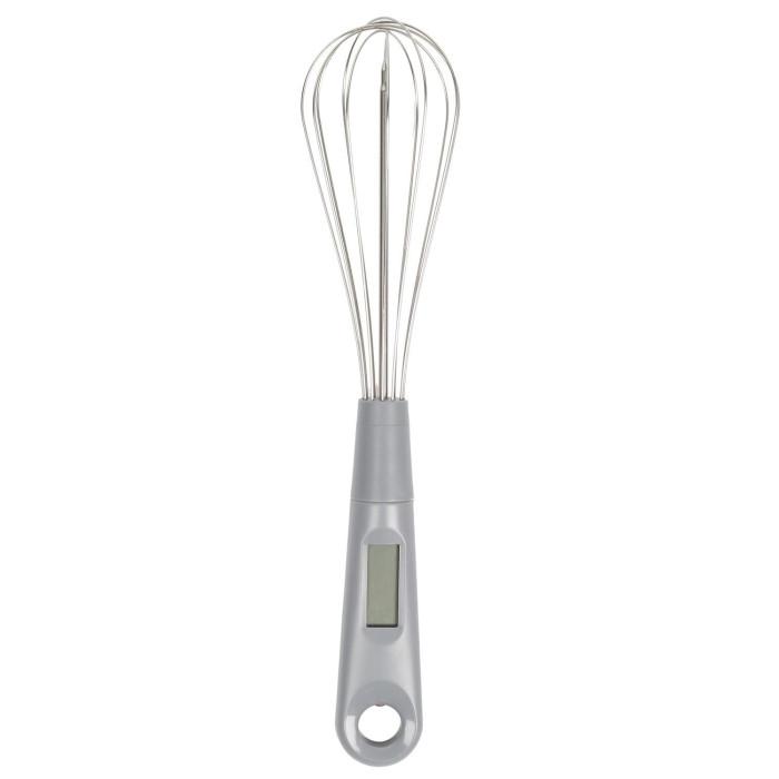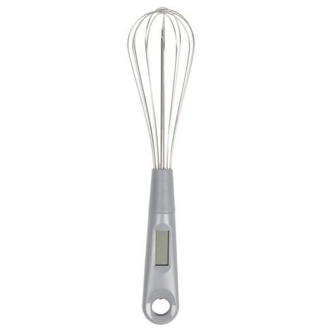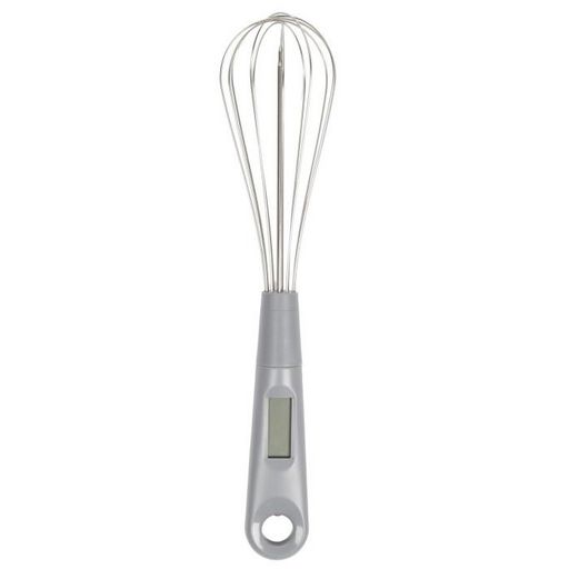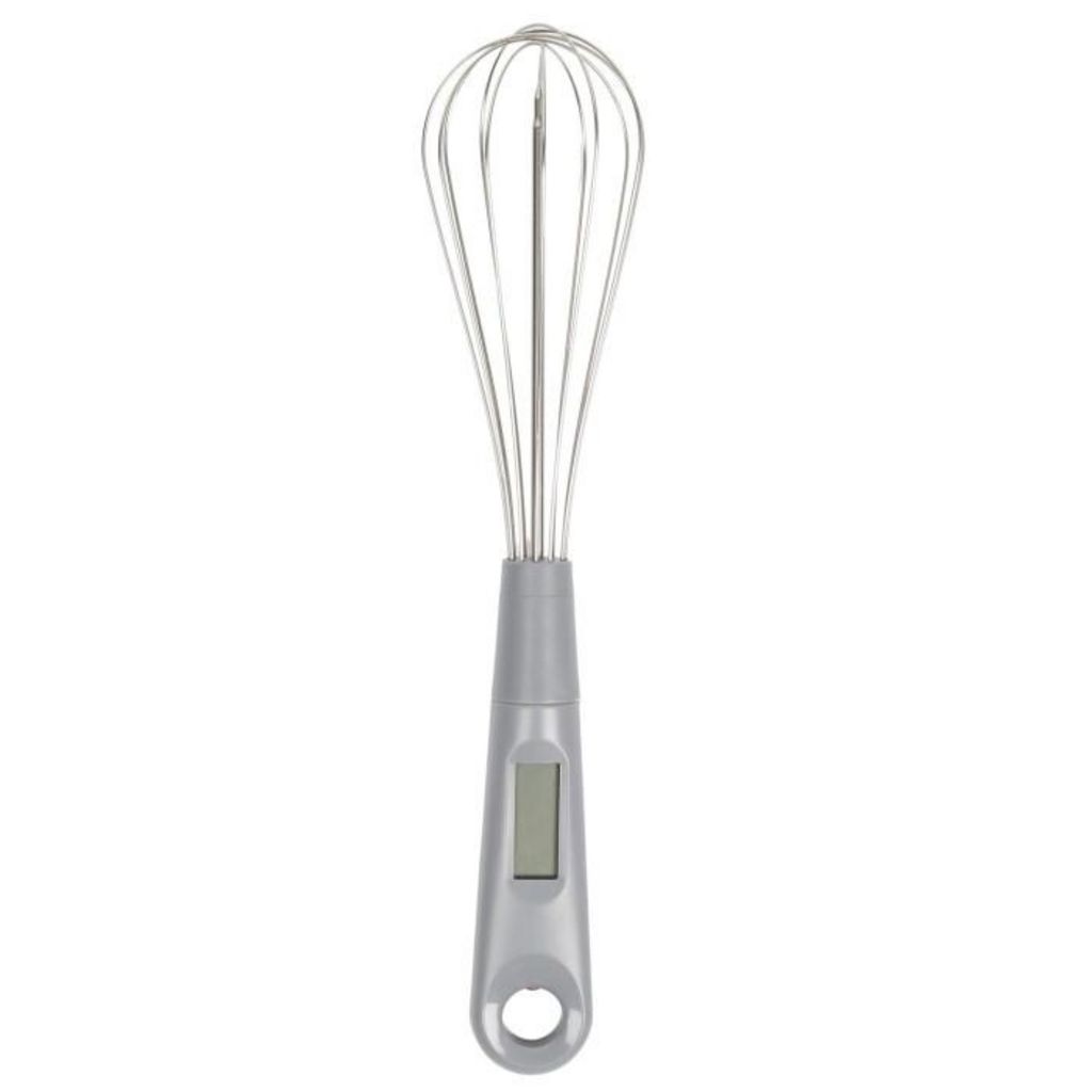 Informations Techniques : Dimensions : D. 6 x H. 30,5 cm Matières : ABS, Métal & Acier inoxydable Spécificités : Pratique & Utile Fouet à Sonde Écran Digital Pile incluse Fouet Amovible Température (de -30° à +328°) Idée Recette au Dos Poids : 0,064 kg Couleur : Argent