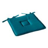 Informations Techniques : Dimensions : L. 40 x l. 40 cm Matières : 100% Coton indien (170g/m2) Garnissage : 100% Polyuréthane Spécificités : Pratique & Éclatante Galette de chaise carrée Avec 4 liens à nouer Surpiqûre centrale Toucher doux Tissage 2 fils/1 fil Couleur : Bleu Canard