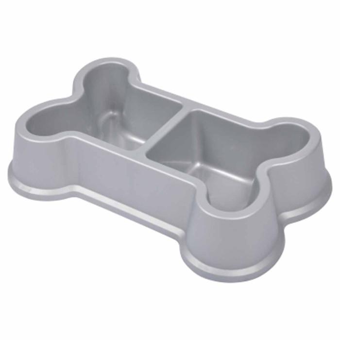 Gamelle Double pour Chien Forme Os 35cm Argent