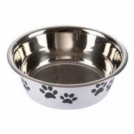 Informations Techniques : Dimensions : D. 21 cm Matière : Inox Spécificités : Pratique & Efficace Gamelle Déco Effet Brillant Pour Chiens & Chats A Motifs Couleur : Blanc