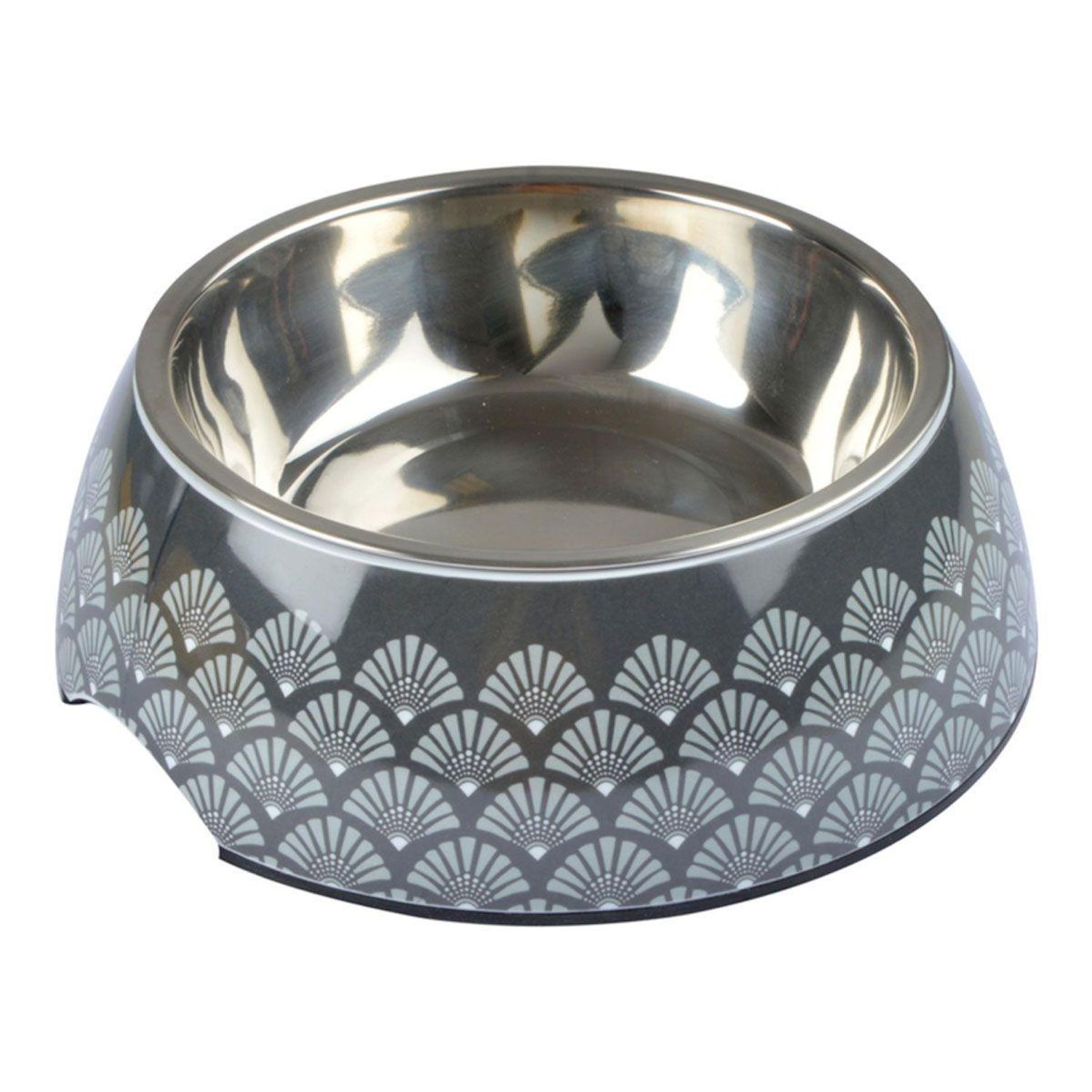 Informations Techniques : Dimensions : D. 17,6 x H. 7,3 cm Matière : Inox Spécificités : Pratique & Utile Gamelle Motif imprimé Bol inox amovible Forme ronde Capacité : 600 ml Poids : 0,5 kg Couleur : Anthracite