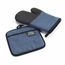 Informations Techniques : Dimensions : Gant : L. 28 x l. 18 cm Manique : L. 20 x l. 20 cm Matières : Polyester (47%), Coton (36,5%), Viscose (12,5%) & Polyamide (4%) Spécificités : Indispensable & Original Texture façon chambray Facile d'utilisation et d'entretien Couleur : Bleu & Noir