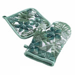Informations Techniques : Dimensions : Gant : L. 28 x l. 18 cm Manique : L. 20 x l. 20 cm Matières : 65% Coton & 35% Polyester Spécificités : Pratique & Utile Gant et manique Imprimé végétal Label Oeko-Tex Conseil d'entretien : Lavage à 40° Pas de séchage en machine Repassage à 150° Poids : 0,11 kg