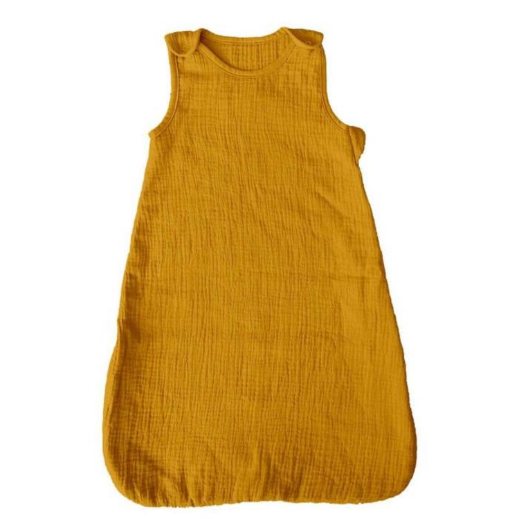 Informations Techniques : Dimensions : L. 90 x l. 50 cm Matière : 100% Gaze de Coton Spécificités : Douce & Agréable Gigoteuse pour Bébé Sans Manches Zip Latéral Poids : 0,21 kg Couleur : Moutarde