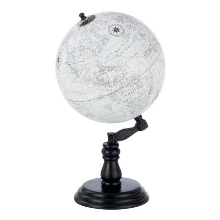 Globe sur Pied en Bois Terrestre 37cm Noir & Gris