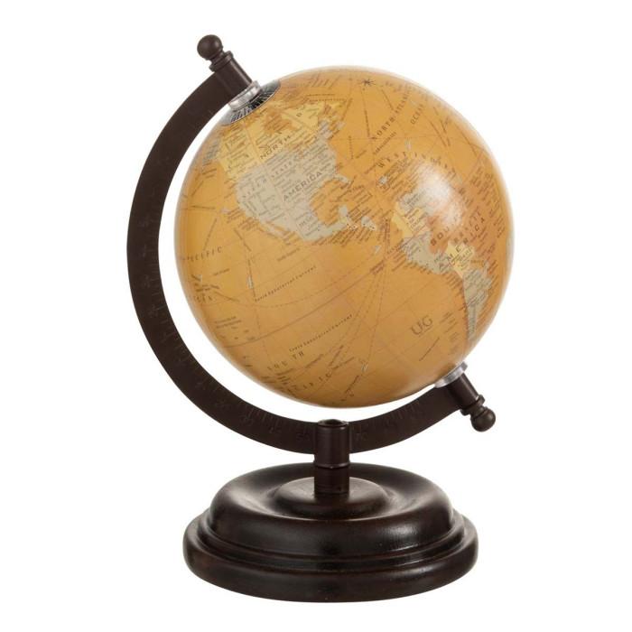 Informations Techniques : Dimensions : L. 22 x l. 22 x H. 17 cm Matière : Bois Spécificités : Design & Moderne Globe Terrestre Forme Ronde Style Vintage Poids : 0,22 kg Couleur : Naturel & Ocre