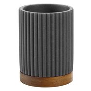 Informations Techniques : Dimensions : D. 8 x H. 10,8 cm Matières : Polyrésine & Bois (Acacia) Spécificités : Pratique & Moderne Gobelet brosse à dents Design strié Vendu à l'unité Poids : 0,29 kg Couleur : Anthracite