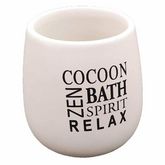 Informations Techniques : Dimensions : D. 8,7 x H. 9,1 cm Matière : Céramique Spécificités : Pratique & Chic Gobelet de Salle de Bain Inscriptions zen Facile d'Entretien & d'Utilisation Couleur : Blanc