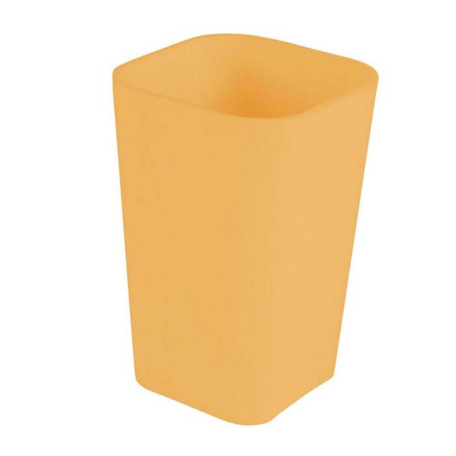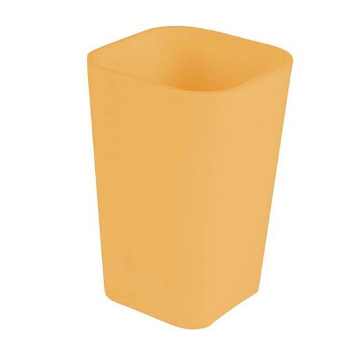 Informations Techniques : Dimensions : L. 7,3 x l. 7,3 x H. 11 cm Matière : Plastique (95%) & Caoutchouc (5%) Spécificités : Robuste & Elégant Gobelet de Salle de Bain Forme Carrée Effet Soft Touch Poids : 0,09 kg Couleur : Ocre