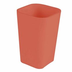 Informations Techniques : Dimensions : L. 7,3 x l. 7,3 x H. 11 cm Matière : Plastique (95%) & Caoutchouc (5%) Spécificités : Robuste & Elégant Gobelet de Salle de Bain Forme Carrée Effet Soft Touch Poids : 0,09 kg Couleur : Terracotta
