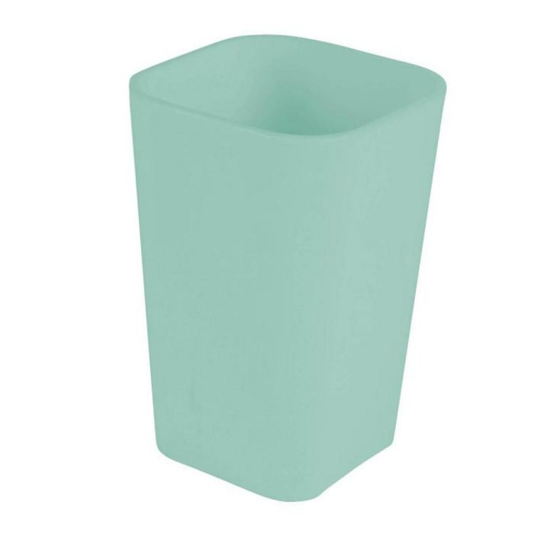 Informations Techniques : Dimensions : L. 7,3 x l. 7,3 x H. 11 cm Matière : Plastique (95%) & Caoutchouc (5%) Spécificités : Robuste & Elégant Gobelet de Salle de Bain Forme Carrée Effet Soft Touch Poids : 0,09 kg Couleur : Tilleul