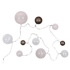 Informations Techniques : Dimensions : L. 192 cm Boule : D. 4, 5, 6, 8 & 10 cm Matière : Plastique Spécificités : Tendance & Moderne Guirlande Lumineuse à Led Fonctionne avec 2 piles AA LR6 (non incluses) Nombre de LED : 10 Facile d'Utilisation Couleur : Rose, Marron & Blanc