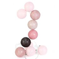 Informations Techniques : Dimensions : L. 175 x D. 6 cm Boule : D. 6 cm Matière : Plastique Spécificités : Tendance & Moderne Guirlande Lumineuse à Led Fonctionne avec 2 piles AA LR6 (non incluses) Nombre de LED : 10 Facile d'Utilisation Couleur : Taupe & Rose