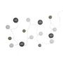 Informations Techniques : Dimensions : L. 360 cm Matière : Coton Spécificités : Pratique & Utile Guirlande Lumineuse 15 LEDs Raccordement USB Couleur : Gris