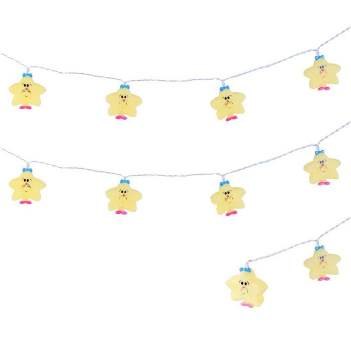 Informations Techniques : Dimensions : L. 130 cm Matière : Plastique Spécificités : Design & tendance Guirlande Lumineuse 10 LED Fonctionne à pile : 2 piles AA x LR06 non incluses Bouton : ON/OF Couleur : Jaune