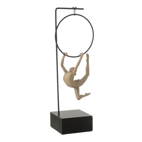 Informations Techniques : Dimensions : L. 17,5 x l. 13 x H. 48 cm Matières : 60% Résine & 40% Métal Spécificités : Élégante & Épurée Statuette sur socle à poser Design gymnaste avec cerceau À monter soi-même Poids : 1,4 kg Couleur : Beige & Noir