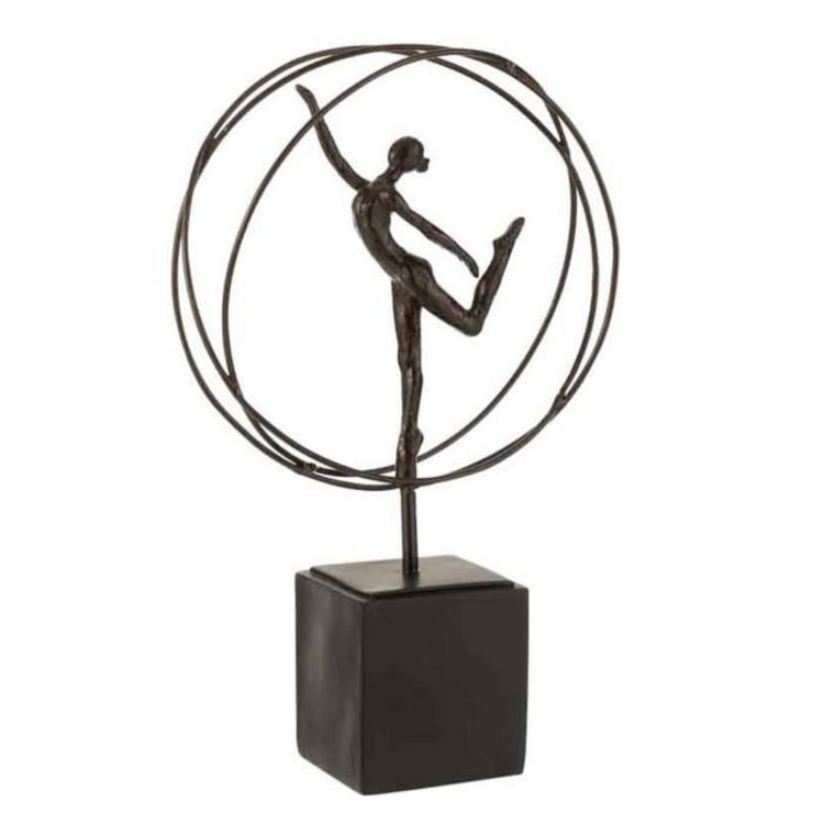 Informations Techniques : Dimensions : L. 21,7 x l. 8,2 x H. 35,6 cm Matière : Résine Spécificités : Pratique & Utile Statuette sur socle à poser Design gymnaste dans cercle Poids : 0,9 kg Couleur : Marron Foncé