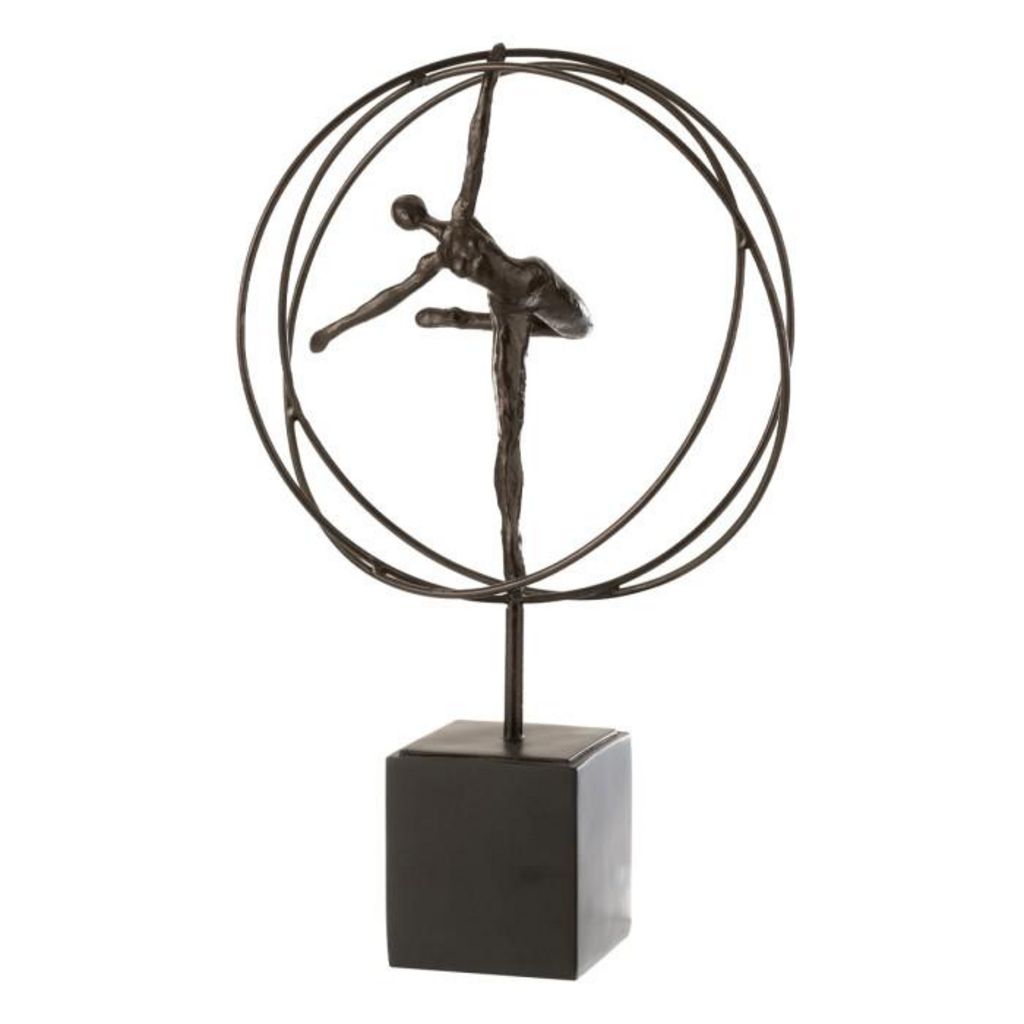 Informations Techniques : Dimensions : L. 27,8 x l. 12,4 x H. 47,6 cm Matière : Résine Spécificités : Pratique & Utile Statuette sur socle à poser Design gymnaste dans cercle Avec jambe tendue Poids : 1,8 kg Couleur : Marron Foncé