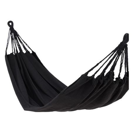 Informations Techniques : Dimensions : L. 200 x l. 150 cm Matière : Polyester Spécificités : Confortable & Utile Hamac en tissu Suspension avec cordes Poids max supporté : 120 kg Poids : 1 kg Couleur : Noir