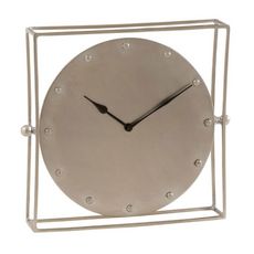 Informations Techniques : Dimensions : L. 33 x l. 7 x H. 33 cm Matière : Métal Spécificités : Tendance & Pratique Horloge à Poser Orientable Forme Carrée Style Rétro & Vintage Poids : 3,51 kg Couleur : Argent