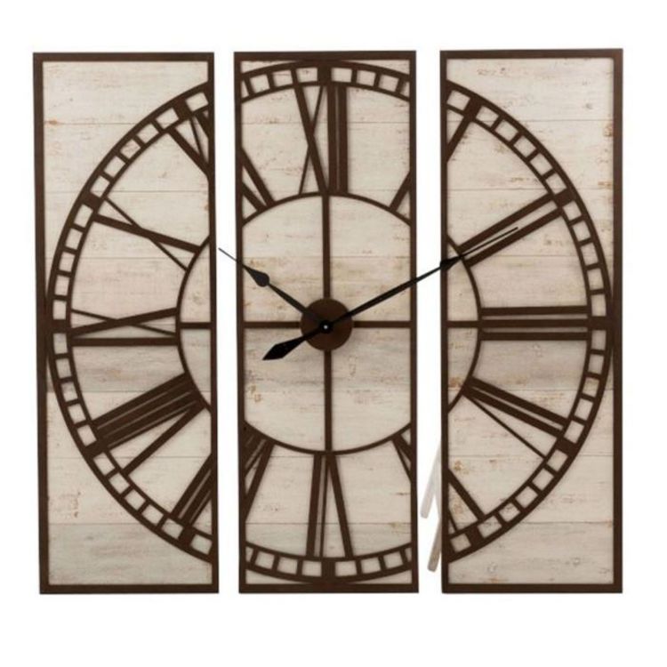 Horloge Murale 3 Parties Chiffres Romains 114cm Marron