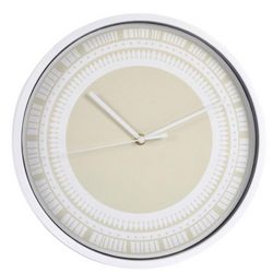 Informations Techniques : Dimensions : D. 30 cm Matière : Plastique Spécificités : Robuste & Tendance Couleur rafraîchissante Horloge design Poids : 0.8 kg Couleur : Ecru