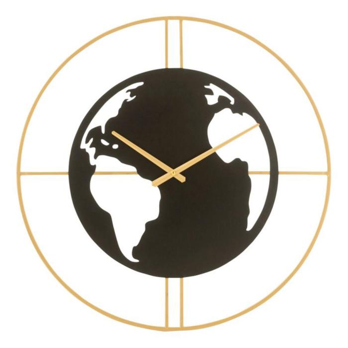 Horloge Murale Carte du Monde 60cm Noir & Or